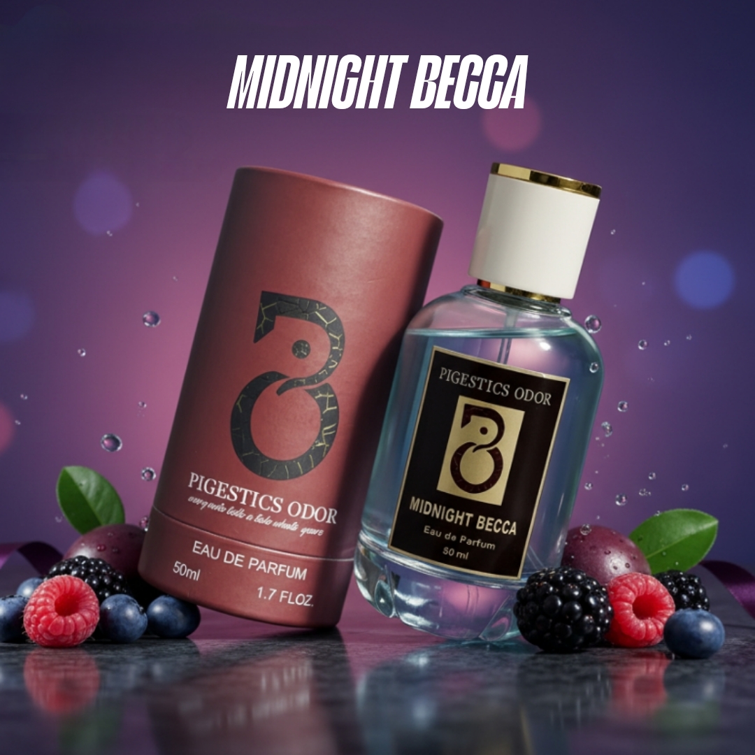 Midnight Becca is a vibrant, fruit-inspired fragrance that captures the allure of midnight freshness with juicy citrus brightness and lush berry sweetness. Built around playful raspberry nuances, soft floral hints, and smooth vanilla-sweet accords, it delivers a youthful yet elegant impression that feels both fresh and irresistibly delicious.